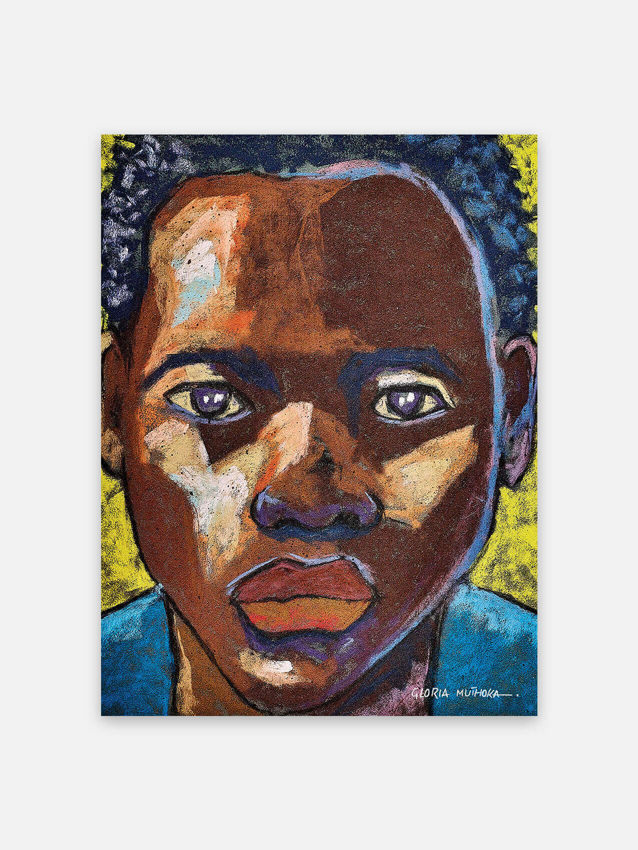 “Mama Samaki – de geliefde visverkoopster op de markt. Je kent haar wel: de vrouw in het kleine, door roet bevlekte kraampje met een borrelende wok vol vis en hete olie. Maar achter haar kraam schuilt een leven vol verhalen. Ze is niet alleen een handelaar; ze is een moeder, een zus, een grootmoeder, verweven in een uitgebreid netwerk van vissers, verkopers, kopers en meer. Haar handel in gefrituurde vis is niet zomaar een baan, maar een essentiële schakel in de Keniaanse economie. Door haar doorleefde handen, getekend door jaren van het schoonmaken van vis en littekens van talloze brandwonden, belichaamt Mama Samaki veerkracht en gemeenschap. Deze overpeinzingen nodigen ons uit om verder te kijken dan haar kraam en het complexe web van levens en verhalen te waarderen die samenkomen op haar markthoek, waardoor niet alleen onze tafels worden verrijkt, maar ook ons begrip van haar wereld.” Gloria Muthoka is een Keniaanse beeldend kunstenaar die zowel traditionele als digitale kunst beoefent. Door verhalen te visualiseren via kunst, verkent en geniet ze van de verfijning van het artistieke proces. Haar werk is levendig en veelzijdig, geïnspireerd door de sociaal-culturele dynamiek van de samenleving.