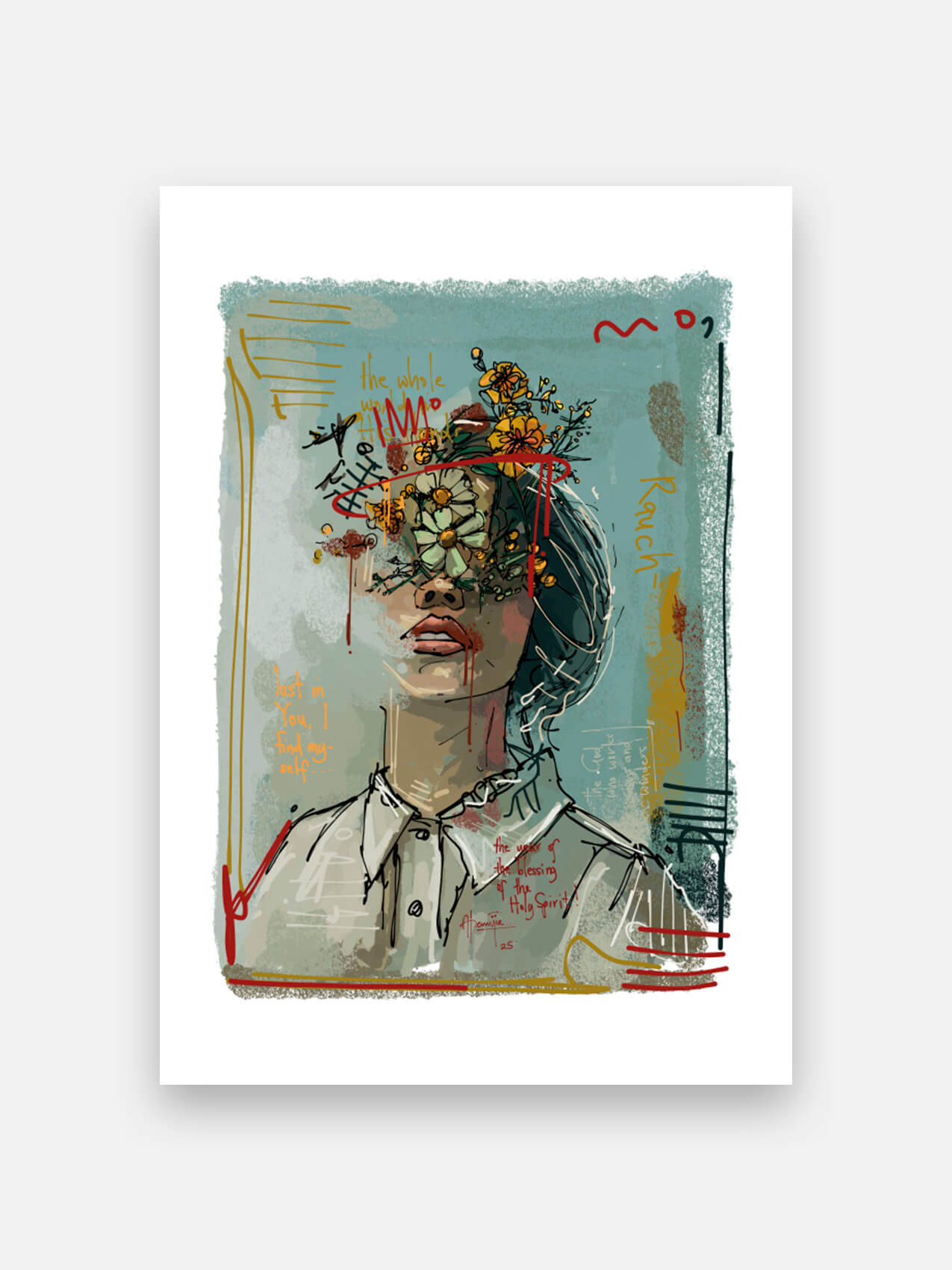 “De wind, de geest – het is dichterbij dan je denkt en klaar om je te leiden.” Elk werk van Kibira brengt levenservaringen tot op je muur. Krachtig, eerlijk en diep menselijk – zijn kunst voegt een vleugje heling, hoop en kleur toe aan je leven.